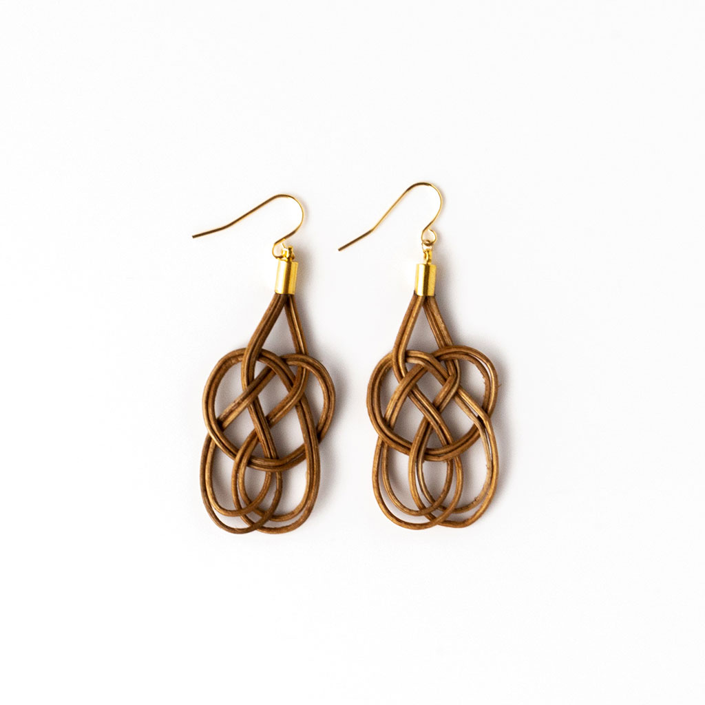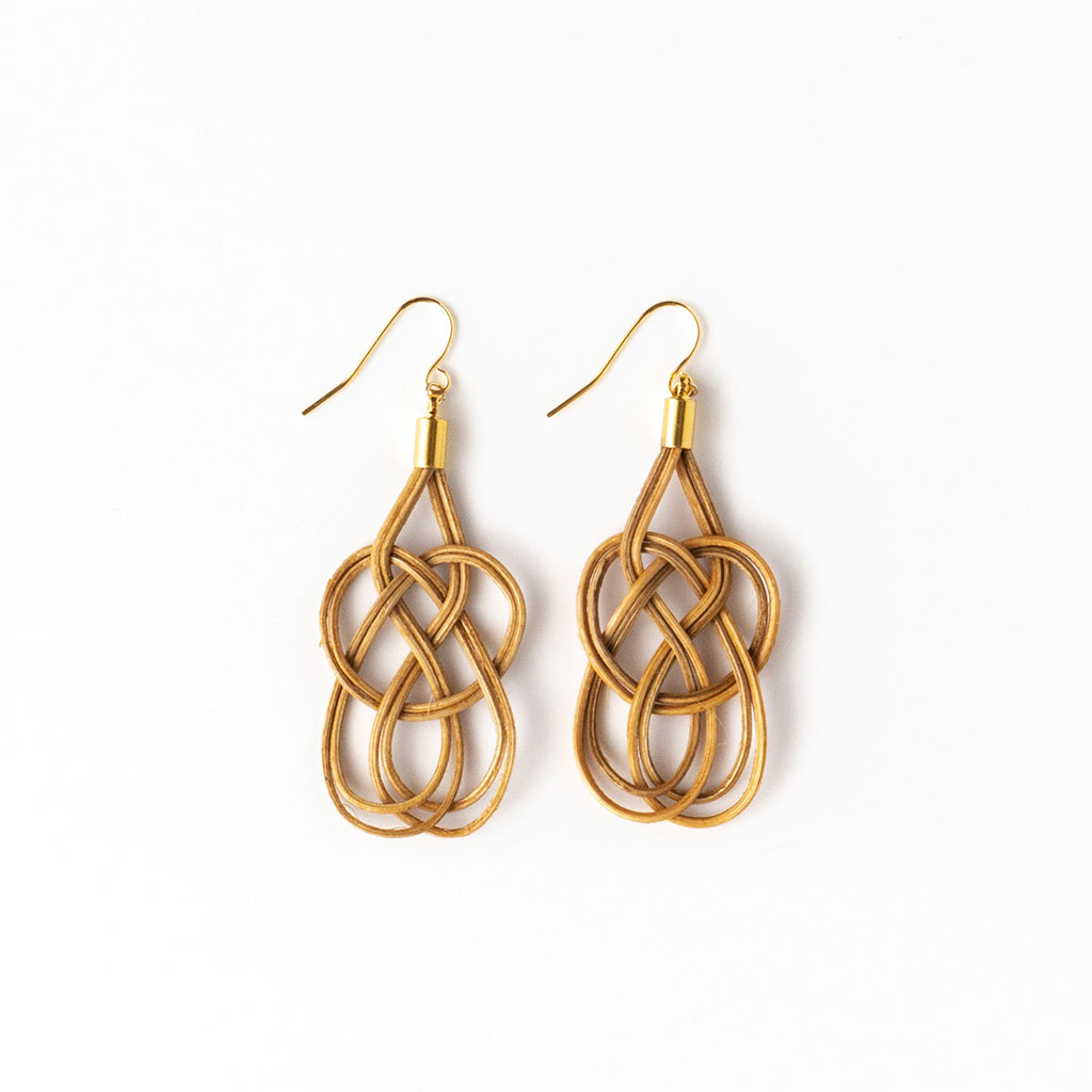 ひとつひとつ手作業で丁寧に編んで作られた、籐(ラタン)製のピアス。美しい編み込みを眺めているだけでもうっとりしてしまいます。