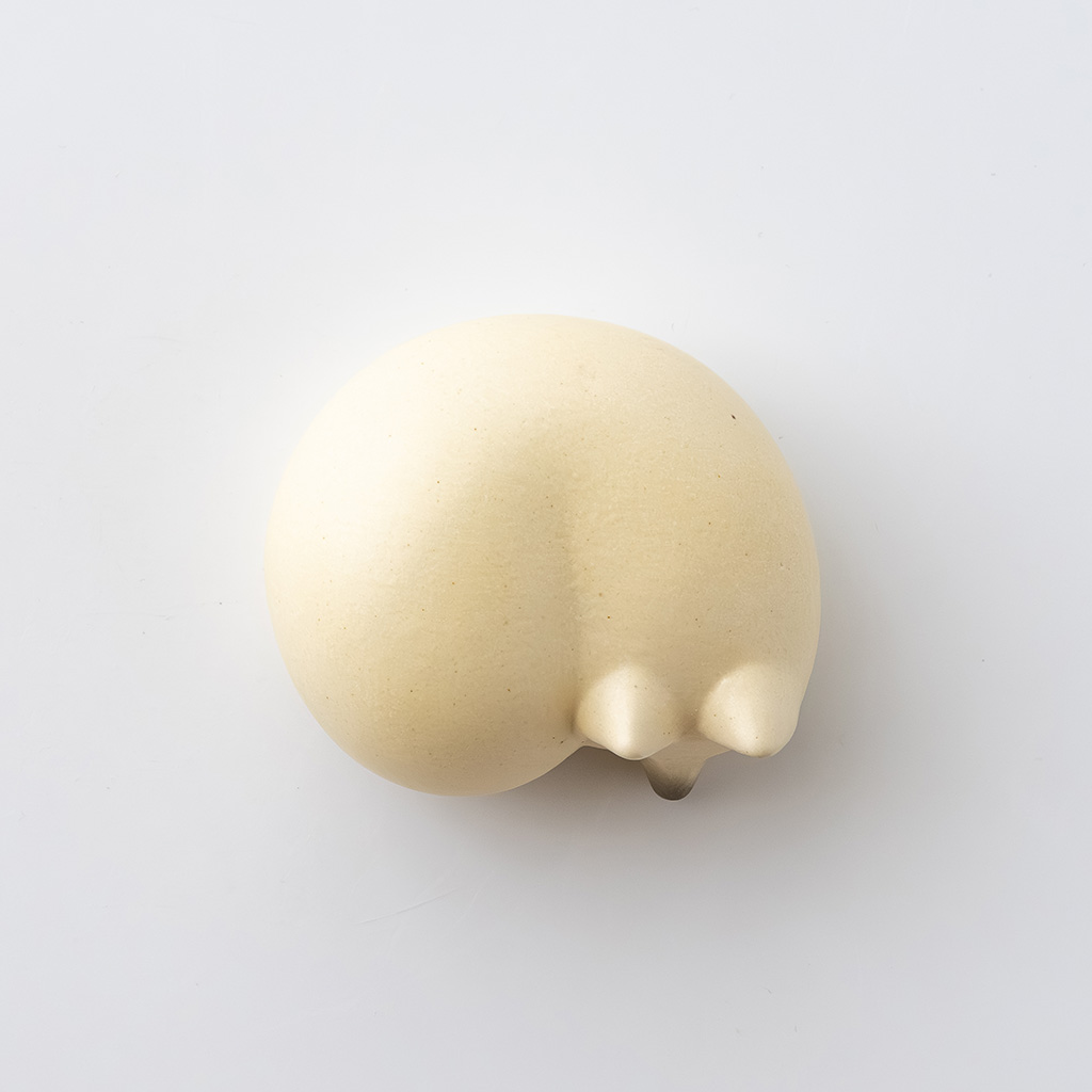 シリーズに新たに加わった、雪の中にいるような白キツネ。まあるく丸まったボディがなんとも愛おしく、なんだかとってもベーグルみたいです。置く場所によって印象が変わるので、お顔が見えるアングルにしてみたり、上からベーグル感を楽しんでみたりしてあげてくださいね!